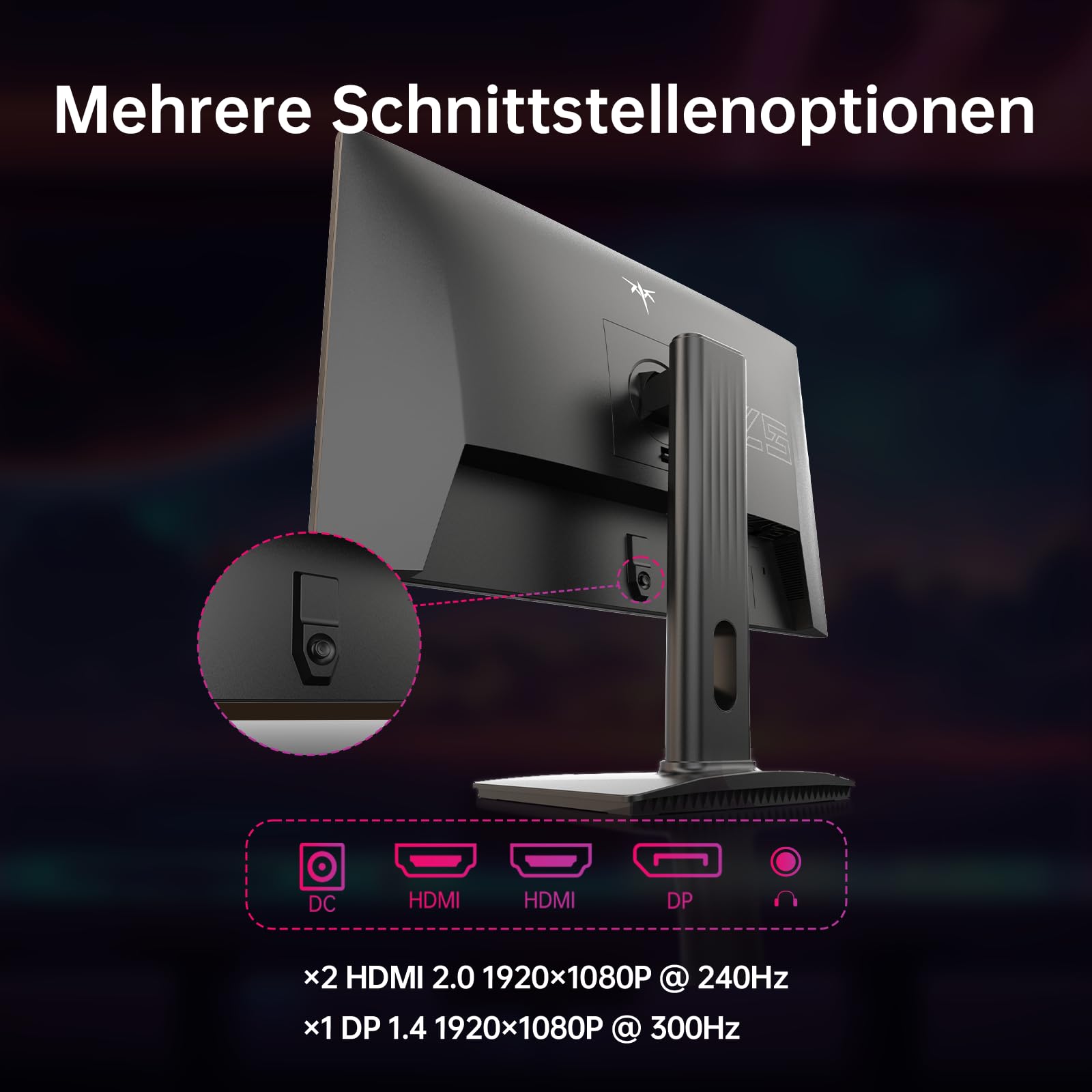 KTC Gaming Monitor 25 Zoll | 300Hz (OC 320Hz) | FHD 1080P | Fast IPS Panel | 1ms | Adaptive-Sync | HDR10 | 119% sRGB | HDMI x2, DP x1 | Schwenken, Heben Stand | Wandmontage VESA 100 * 100mm | H25Y7