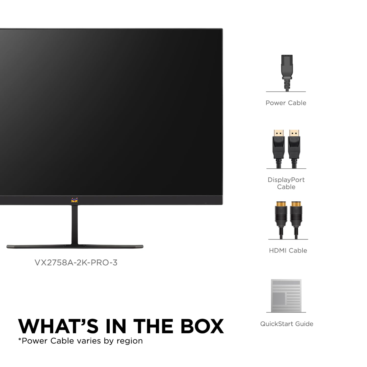 ViewSonic VX2758A-2K-PRO-3 Gaming Monitor 240hz 27zoll, Gaming Monitor 240hz QHD 2560p x 1440p, IPS, 1ms MPRT, FreeSync Premium, Tilt Adjustable, Dual HDMI & DP